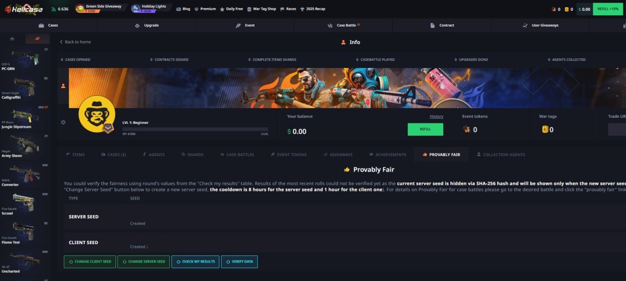 Transparency alone is not enough without a way to verify it. That is why Hellcase uses a provably fair system that allows you to independently confirm the outcome of games. This system ensures that results are generated fairly and cannot be altered after the fact.